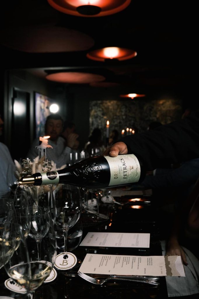 La degustación propiamente dicha inició con una ensalada de espárragos, queso de cabra, huevo y trufa, un maridaje atrevido pero ideal del Oremus Late Harvest 2022. A continuación, un delicado filete de lubina con salsa verde de anchoas y beurre blanc encontró su eco perfecto en la complejidad del Oremus Mandolás Furmint 2022 y la profundidad del Oremus Petracs Furmint 2019.